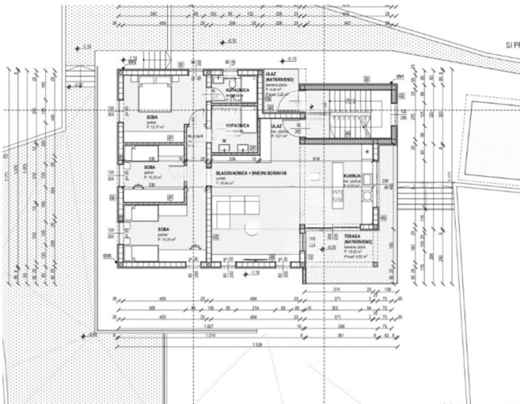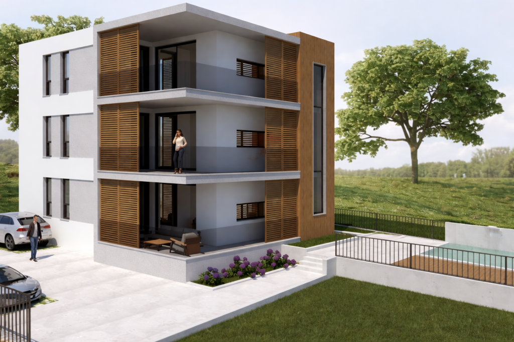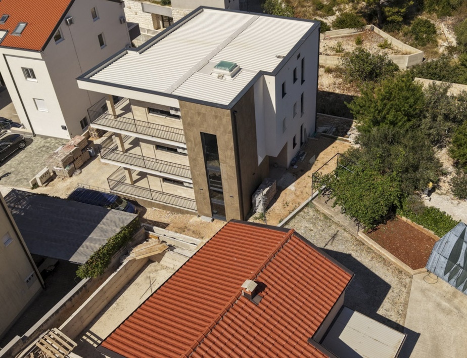 In einer modernen Boutique-Residenz mit nur drei Wohneinheiten liegt diese hochwertige Erdgeschosswohnung in Malo Zečevo bei Rogoznica – nur ca. 100 Meter vom Meer entfernt. Die Gesamtfläche beträgt ca. 122 m² mit ca. 103 m² Wohnfläche und einer 19 m² großen Terrasse. Zur Wohnung gehören ein privater Pool (32 m²), ein Kellerabteil (12 m²) sowie ein eigener PKW-Stellplatz.