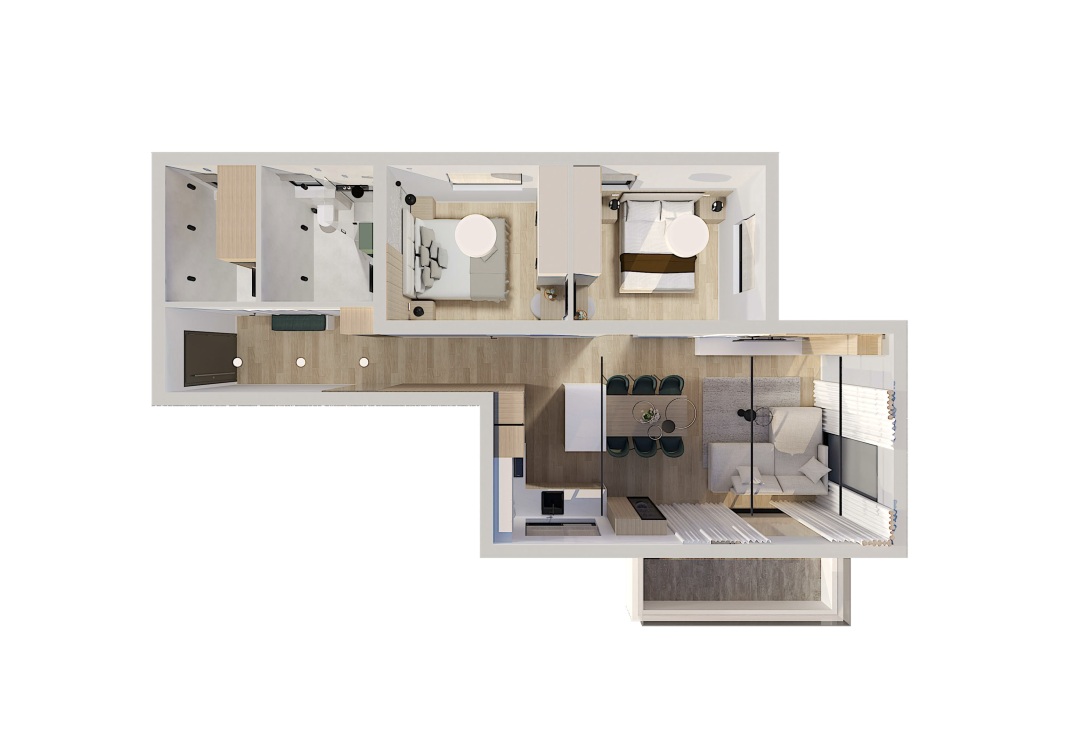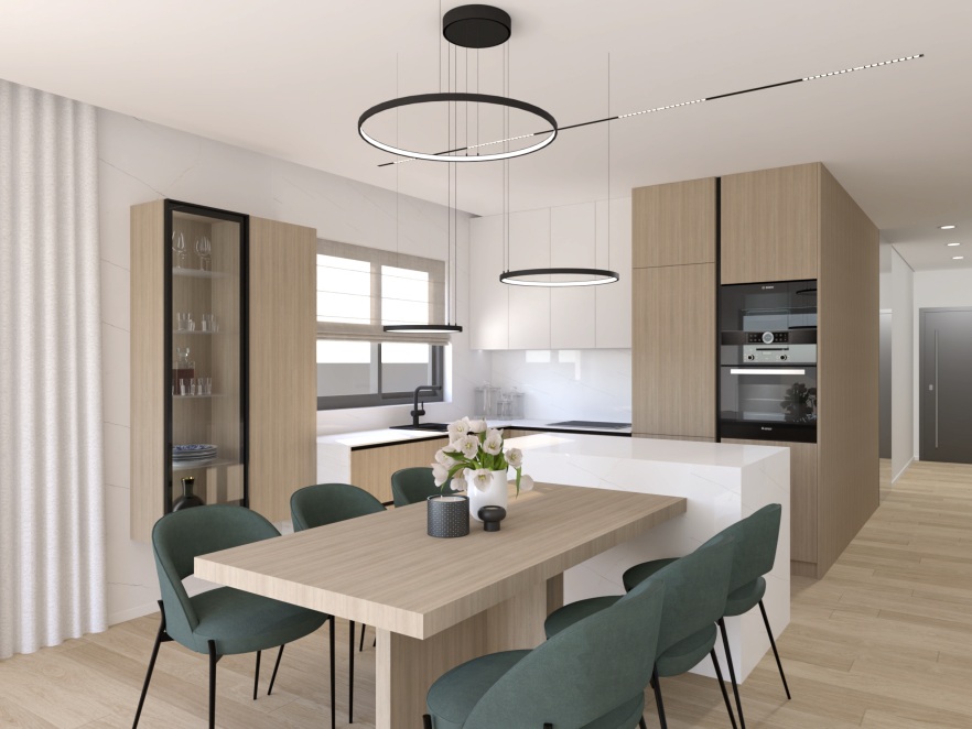 Der offen gestaltete Wohn- und Küchenbereich mit 29,53 m² bildet das Zentrum der Wohnung und schafft ein harmonisches Zusammenspiel aus Weite und Wohnlichkeit. Zwei Schlafzimmer (10,44 m² und 9,58 m²) bieten Raum für Rückzug und Erholung. Ergänzt wird das Raumangebot durch ein stilvoll ausgeführtes Badezimmer (5,36 m²), ein separates Gäste-WC (4,34 m²) sowie einen zentralen Flur (8,72 m²). Die gesamte Innenwohnfläche von 68,35 m² erweitert sich durch eine 8,27 m² große Terrasse – ein geschützter Platz für ruhige Morgenstunden oder stimmungsvolle Abende mit Blick auf Meer und Berge.