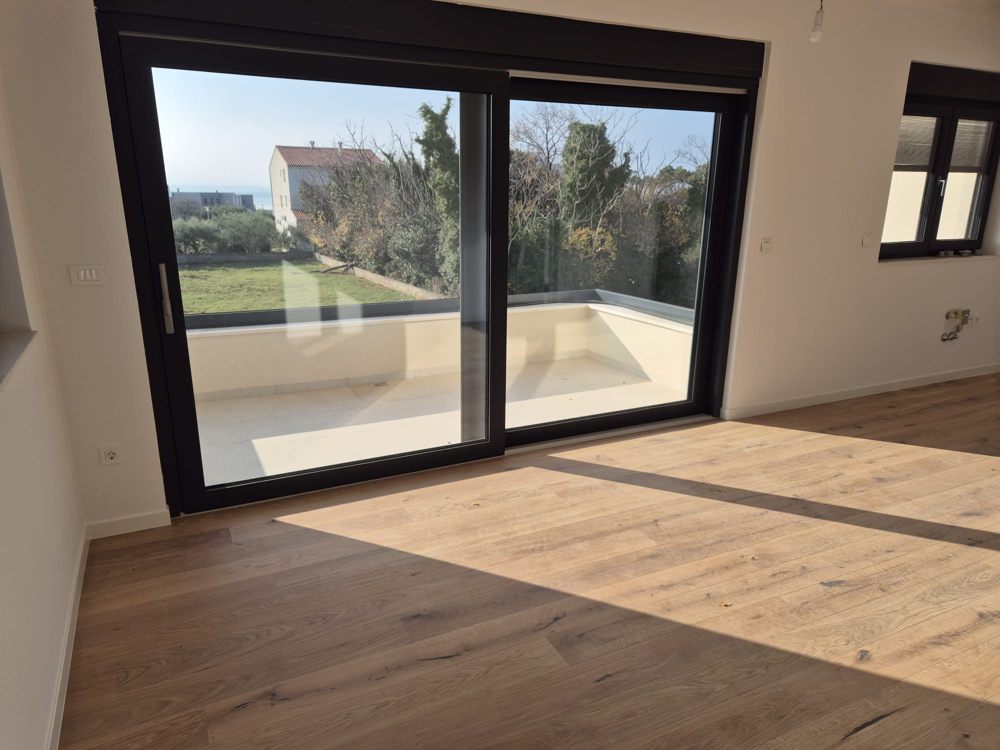 Ein Panorama aus Adria und Bergsilhouette prägt dieses außergewöhnliche Wohnkonzept und verleiht ihm eine besondere Atmosphäre. Nur wenige Gehminuten vom Strand entfernt entsteht diese elegante Neubauwohnung (Fertigstellung 2026) in erhöhter Lage mit freiem Blick, angenehmer Zurückgezogenheit und mediterranem Lebensgefühl. Großzügige Glasflächen öffnen die Räume zur Landschaft, lassen viel Tageslicht einfließen und unterstreichen die klare, moderne Formensprache.