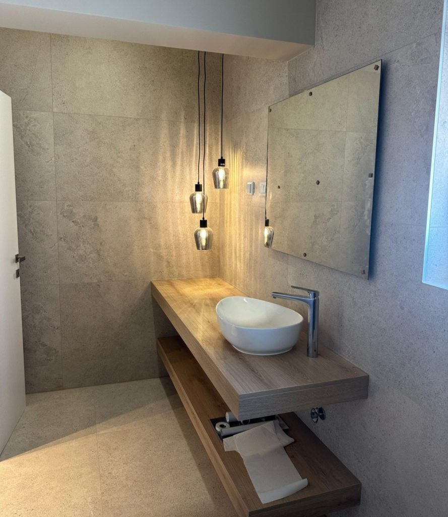 Rund 206 m² Wohnfläche verteilen sich auf drei Ebenen und schaffen ein großzügiges Raumgefühl mit klaren Linien und viel natürlichem Licht. Das Erdgeschoss öffnet sich mit einem offenen Wohn-, Ess- und Küchenbereich zur Terrasse mit 30 m² Pool und in den Garten – ein fließender Übergang zwischen Innenraum und mediterraner Außenwelt.