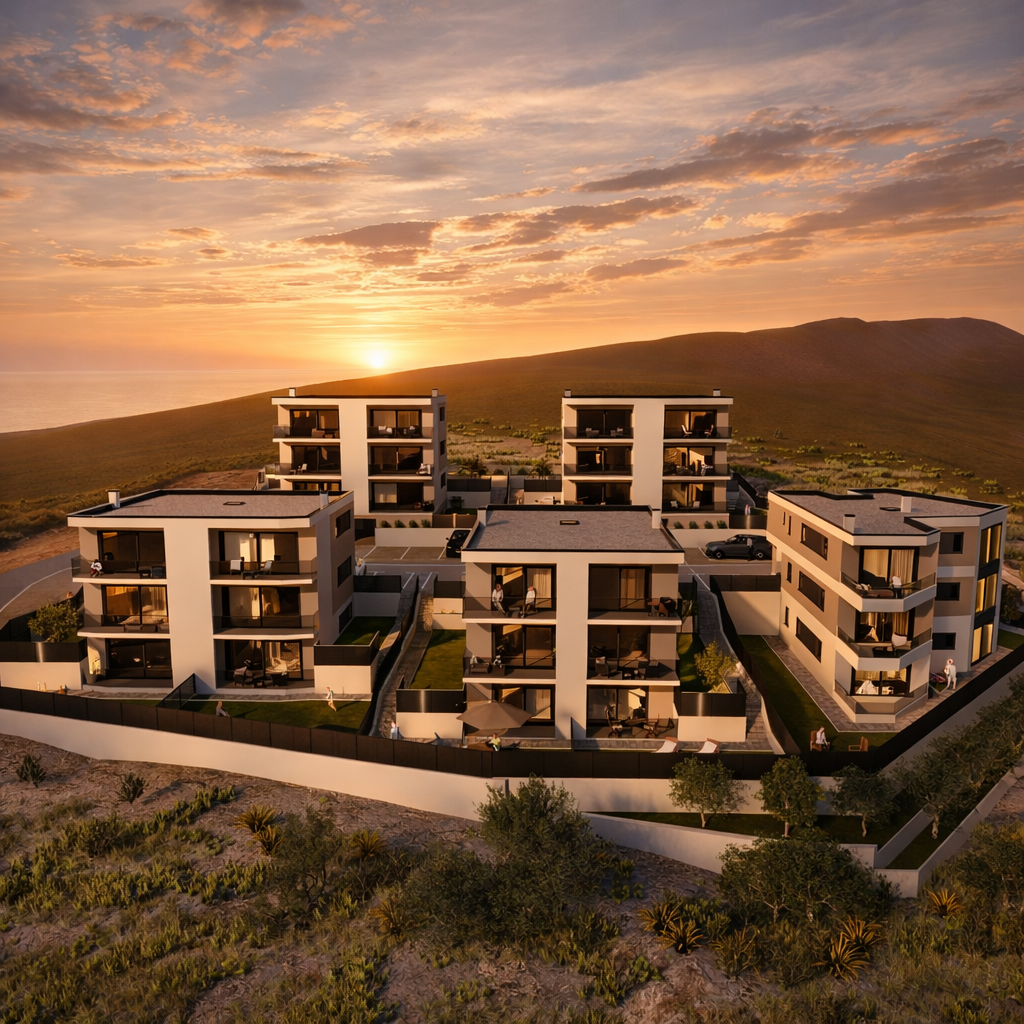 Manchmal entscheidet nicht die Größe, sondern die Perspektive. In einer der begehrten Lagen von Novi Vinodolski entfaltet das Wohnprojekt Santa Lucia eine architektonische Handschrift, die klare Linien mit mediterraner Leichtigkeit verbindet. Fünf freistehende Baukörper bilden ein Ensemble mit Panorama, Ruhe und nachhaltiger Wertigkeit – ein Konzept, das Lebensqualität und Investmentgedanken gleichermaßen anspricht.
