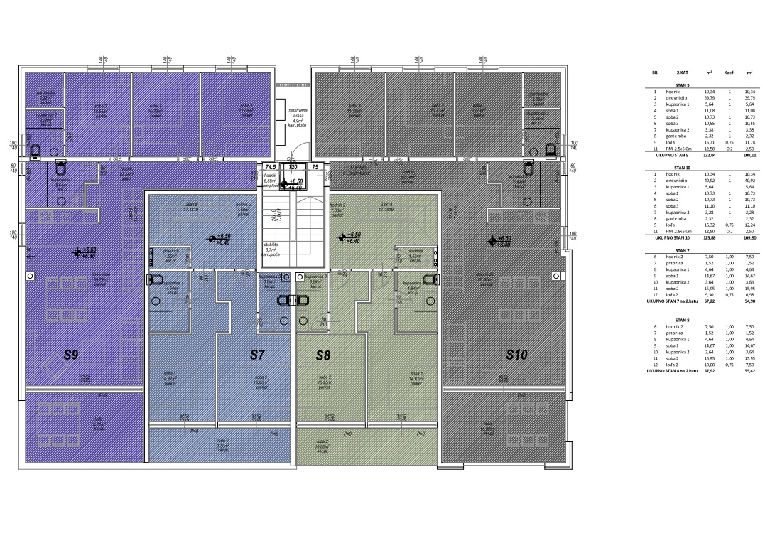 Die Wohnfläche von 93,83 m² befindet sich vollständig auf der unteren Ebene und umfasst drei komfortable Schlafzimmer, zwei modern ausgeführte Badezimmer sowie ein separates Gäste-WC. Der offen gestaltete Wohn- und Essbereich mit integrierter Küche öffnet sich zur Loggia und schafft ein lichtdurchflutetes Ambiente mit fließendem Übergang nach außen. Ein integrierter Wirtschafts- bzw. Abstellraum sorgt für zusätzliche Funktionalität.
