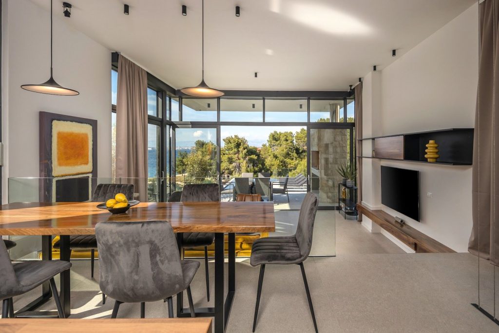 Die Villa bietet einen traumhaften Blick auf die Adria, einen Infinity-Pool, großzügige Terrassen sowie moderne Architektur mit klaren Linien und hochwertigen Materialien.