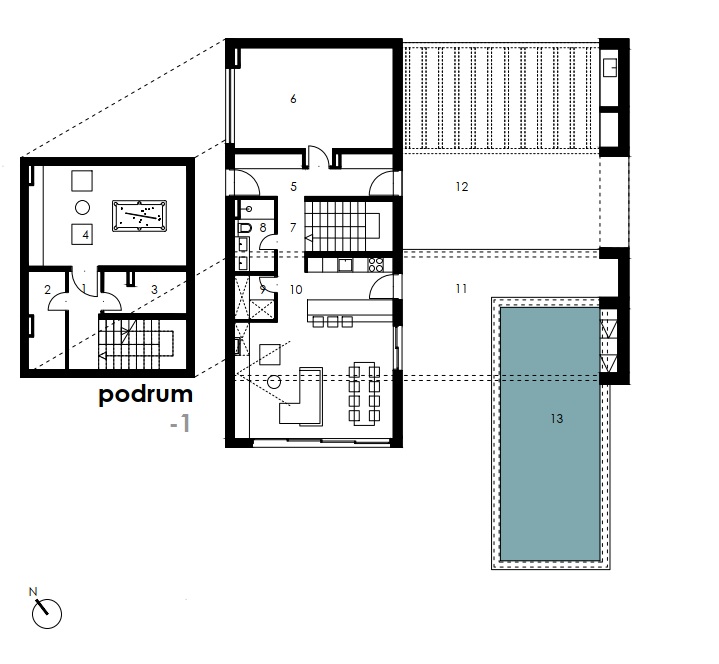 Offener Wohn-, Ess- und Küchenbereich | vier Schlafzimmer | vier Badezimmer | Flur- und Eingangsbereiche | Abstellräume | Waschraum | Technikraum | Maschinenraum | Entertainmentbereich | überdachte Terrasse | Terrassenflächen | Balkon | privater Pool | Garage | moderne Architektur | klare Raumstruktur
