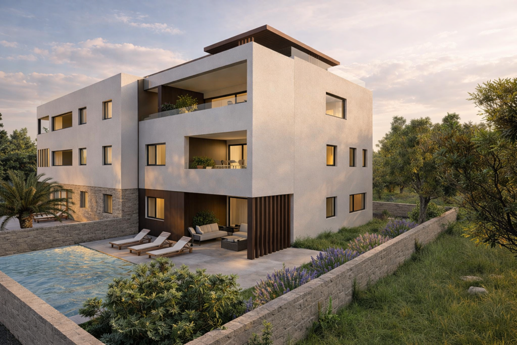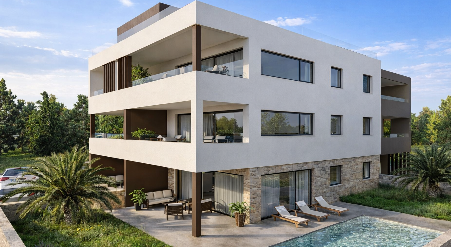 Manche Lagen erzählen ihre eigene Geschichte – hier beginnt sie nur 50 Meter von der Adria entfernt. In privilegierter Position der Zadar-Region präsentiert sich dieses hochwertige 3-Zimmer-Apartment (S2) im Erdgeschoss eines modernen Neubauprojekts mit nur acht Einheiten als stilvoller Rückzugsort mit außergewöhnlicher Nähe zum Meer.