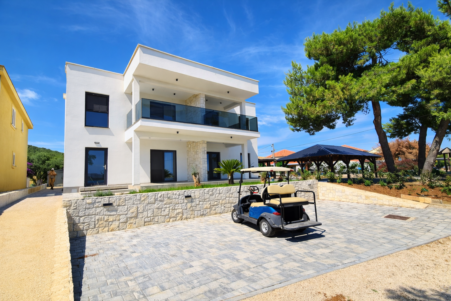 In absoluter Spitzenlage direkt am Meer befindet sich diese moderne Villa im idyllischen Ort Neviđane auf der Insel Pašman. Errichtet im Jahr 2023, vereint die Immobilie zeitgemäße Architektur, hochwertige Ausstattung und einen direkten Bezug zur Adria – inklusive privatem Zugang vom Grundstück zum gepflegten Strand.