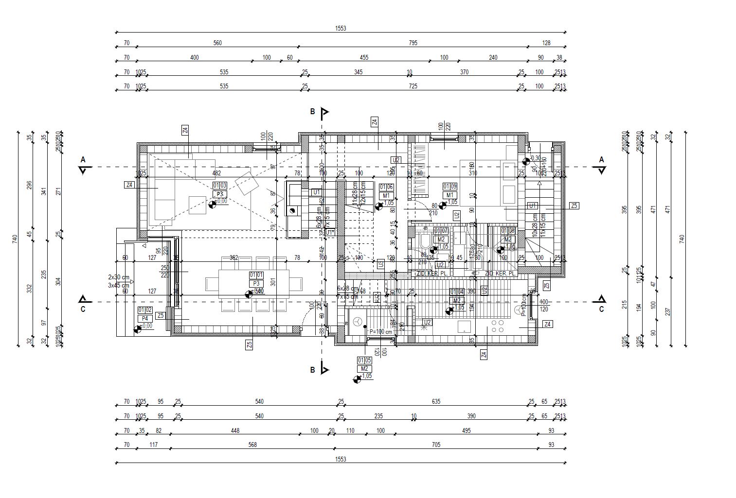 - Erd- & Obergeschoss (210 m²) mit offenem Wohnbereich, moderner Küche, 3 Schlafzimmern und 3 Bädern