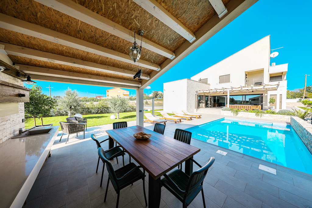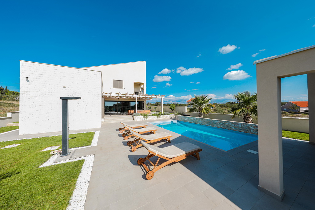Schon die Zufahrt vermittelt ein Gefühl von Weite und Ruhe – dieses außergewöhnliche Anwesen nahe Zadar eröffnet einen Lebensraum, der Privatsphäre, Komfort und mediterrane Leichtigkeit auf seltene Weise vereint.