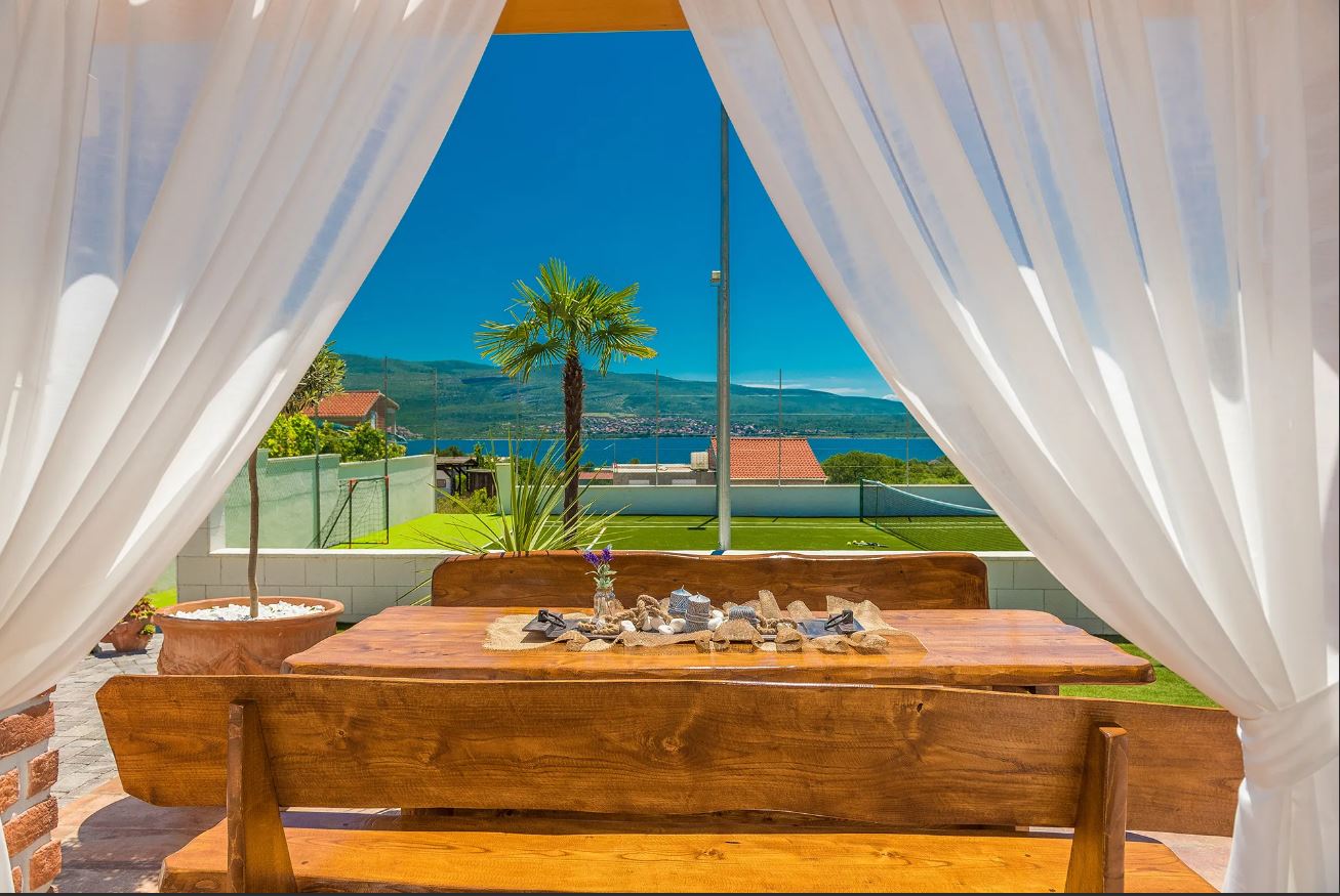 - Außenbereich mit gemauertem Kamin, voll ausgestatteter Sommerküche und Lounge-Bereich mit herrlichem Meerblick
