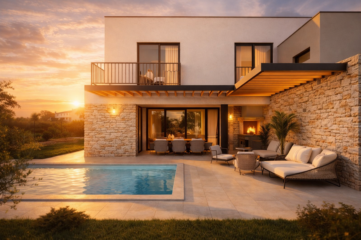Die Villa eignet sich sowohl als hochwertiger Hauptwohnsitz als auch als exklusive Ferienimmobilie. Sie ist vollständig freistehend; lediglich die außenliegende Sommerküche grenzt an das Nachbargebäude an.