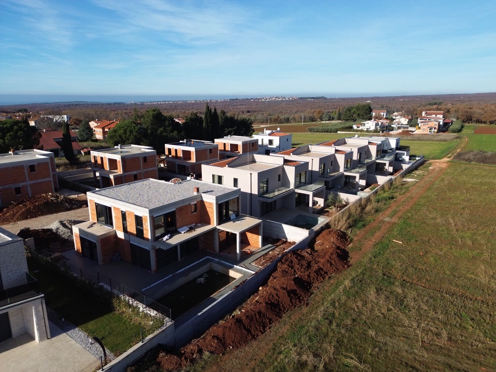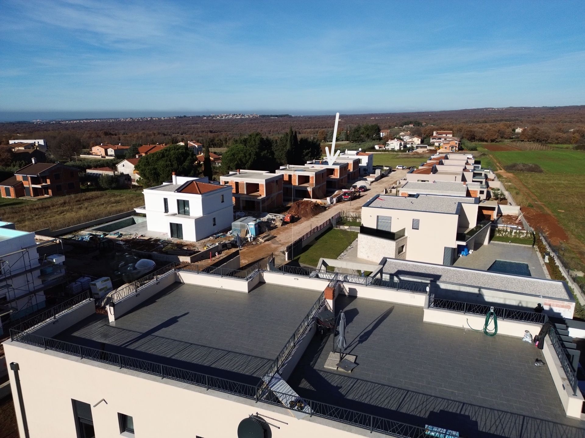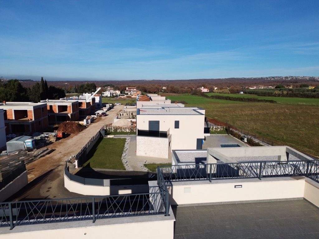 Schon bei der Ankunft vermittelt diese freistehende Neubauvilla nahe Poreč ein Gefühl von Stil und Privatsphäre. Eingebettet in ein architektonisch harmonisches Neubaugebiet, vereint sie modernes Design, hochwertige Bauweise und eine ruhige Wohnatmosphäre.