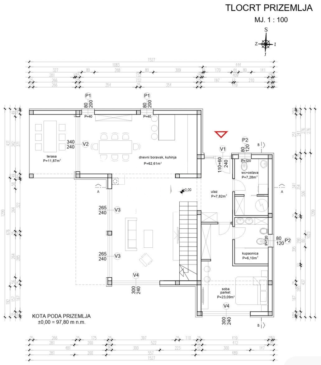 Auf ca. 200 m² Wohnfläche sowie rund 45 m² Terrassenflächen bietet die Villa ein durchdachtes Konzept über zwei Ebenen. Im Erdgeschoss befindet sich ein großzügiger Wohn- und Essbereich mit integrierter Küche, ergänzt durch Hauswirtschaftsraum mit WC sowie ein Schlafzimmer mit eigenem Bad und direktem Zugang zur überdachten Terrasse, in den Garten und zum Pool.