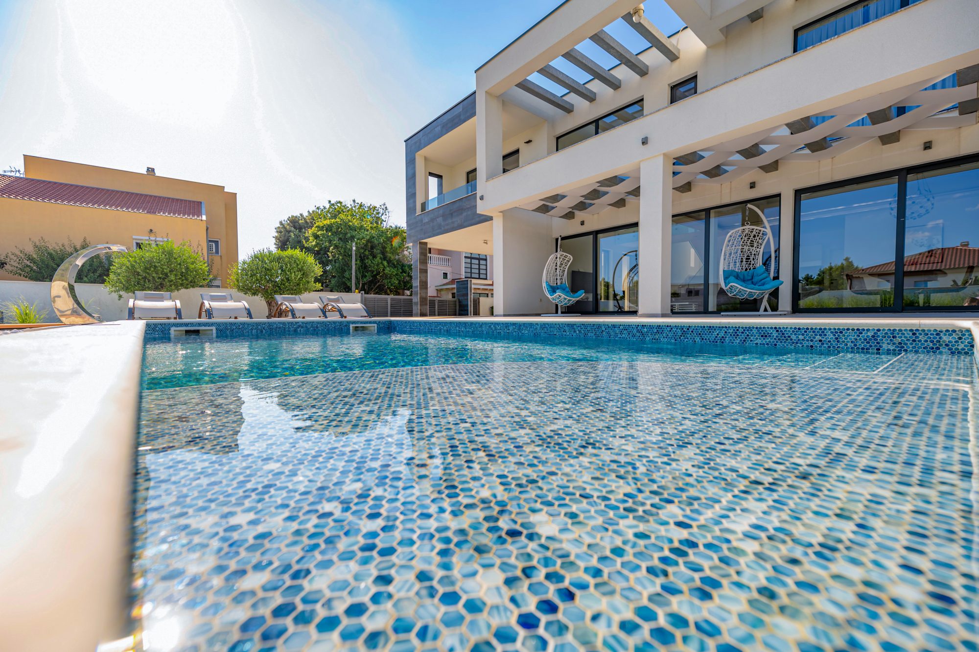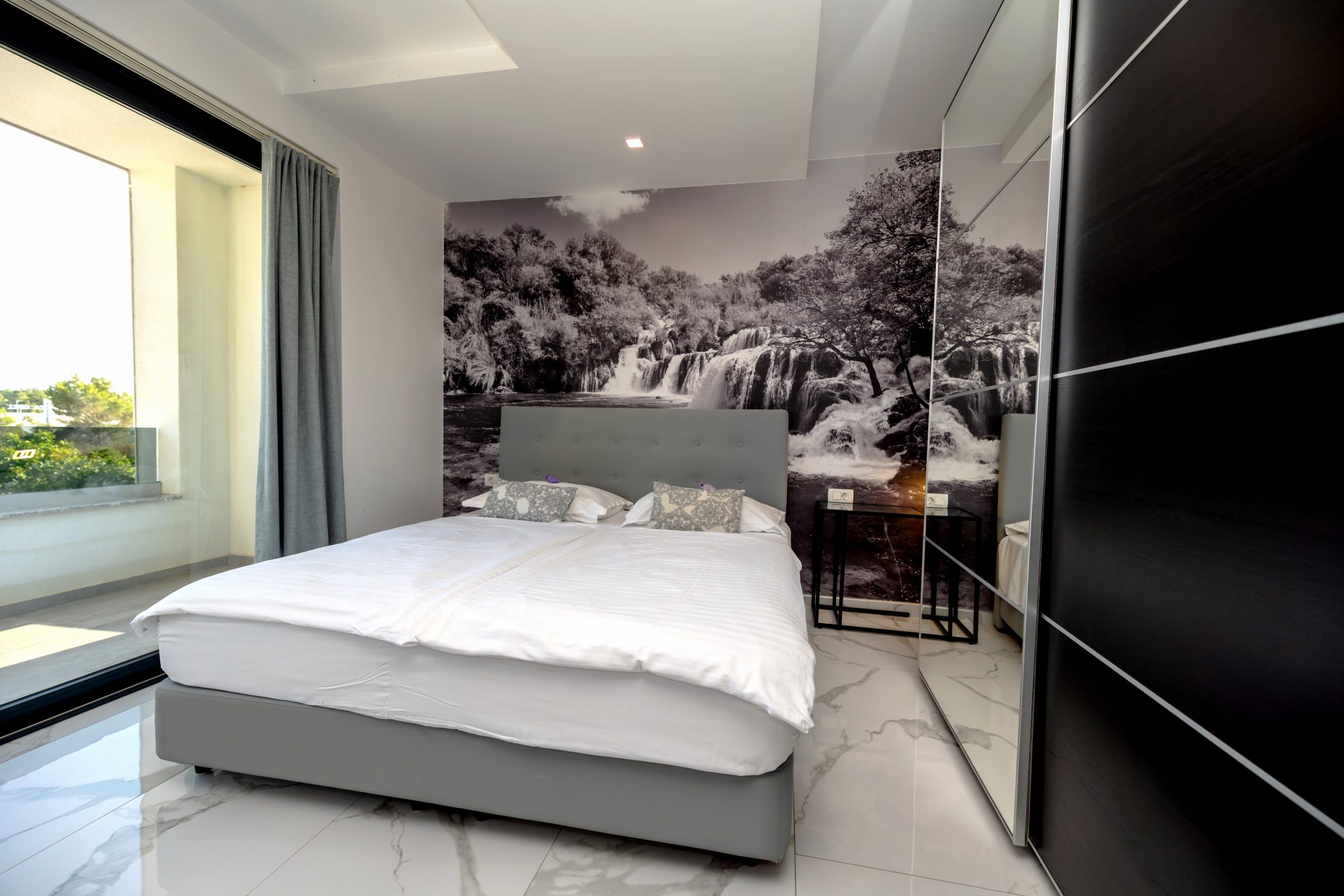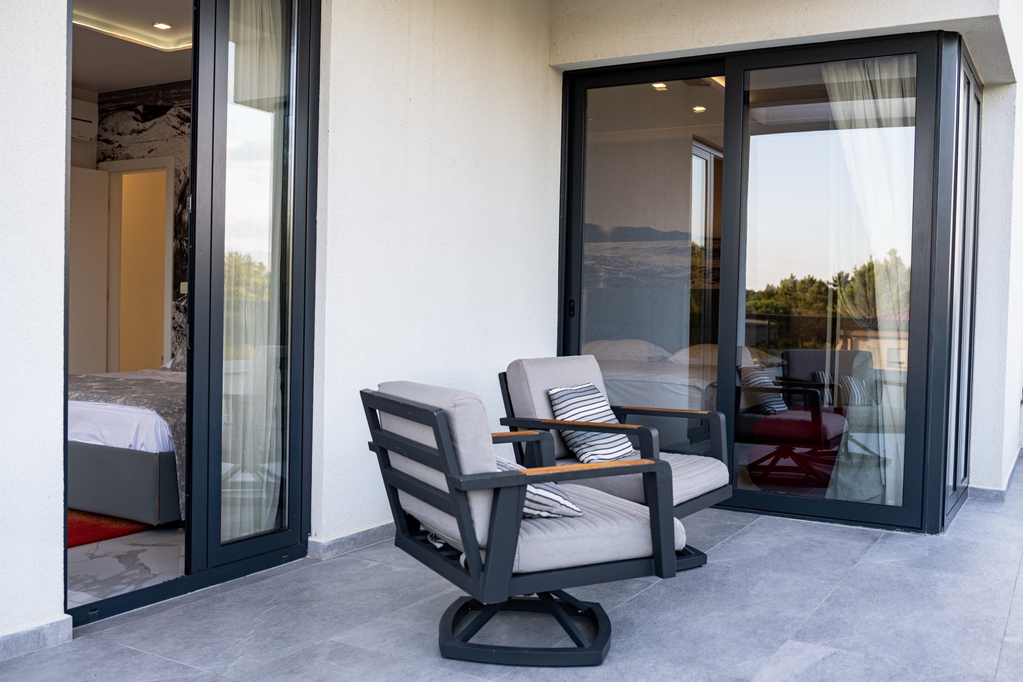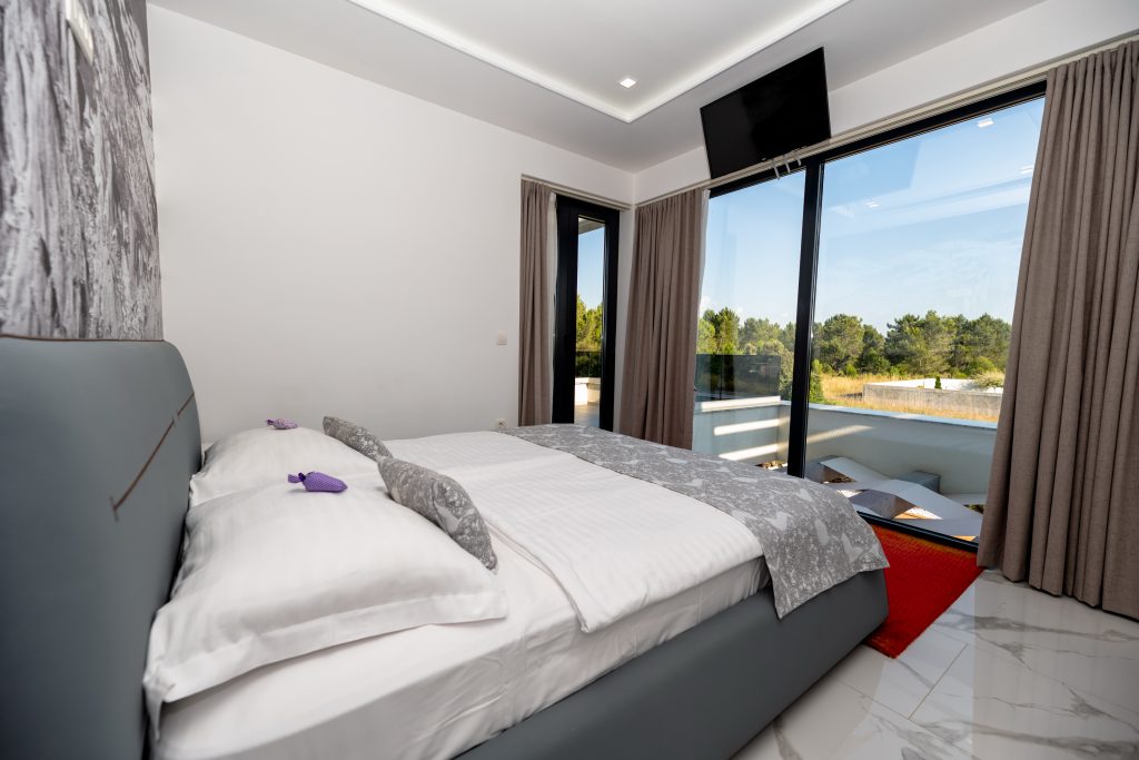 Diese elegante Villa klare Architektur mit mediterraner Leichtigkeit in ruhiger Lage nahe Zadar. Auf einem 854 m² großen Grundstück bietet sie 158,8 m² Wohnfläche auf zwei Ebenen sowie drei Terrassen, davon zwei überdacht, und einen stilvoll gestalteten Außenbereich.
