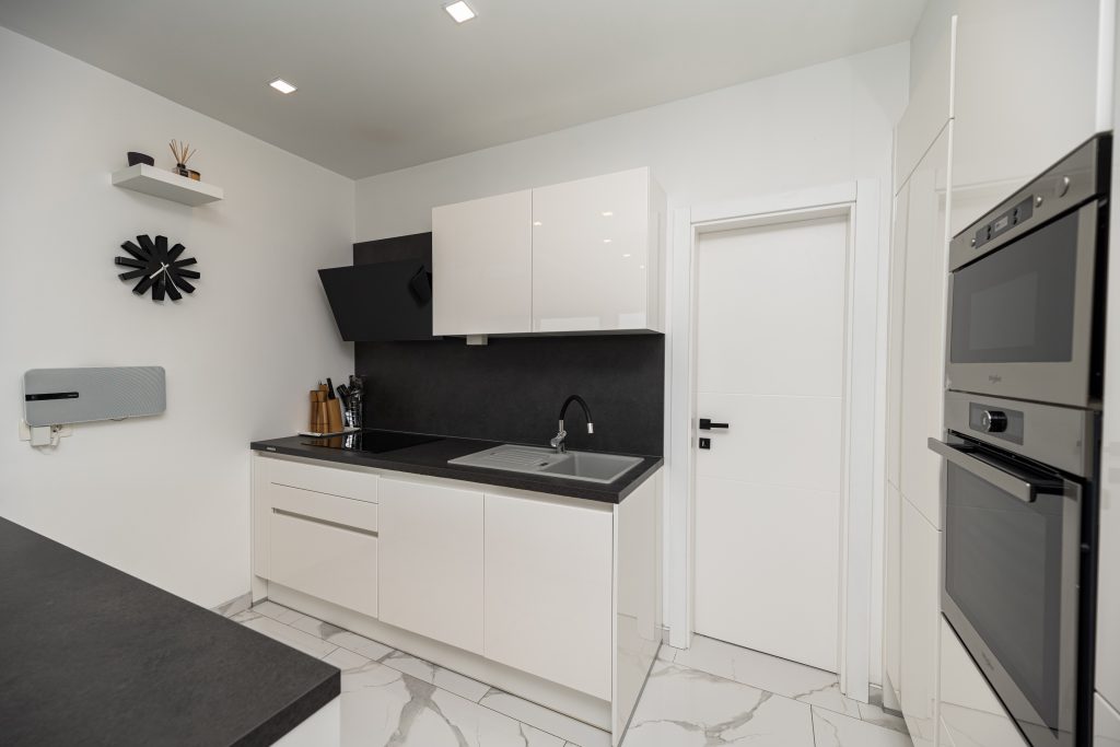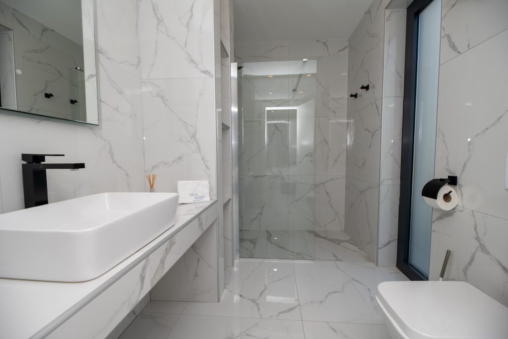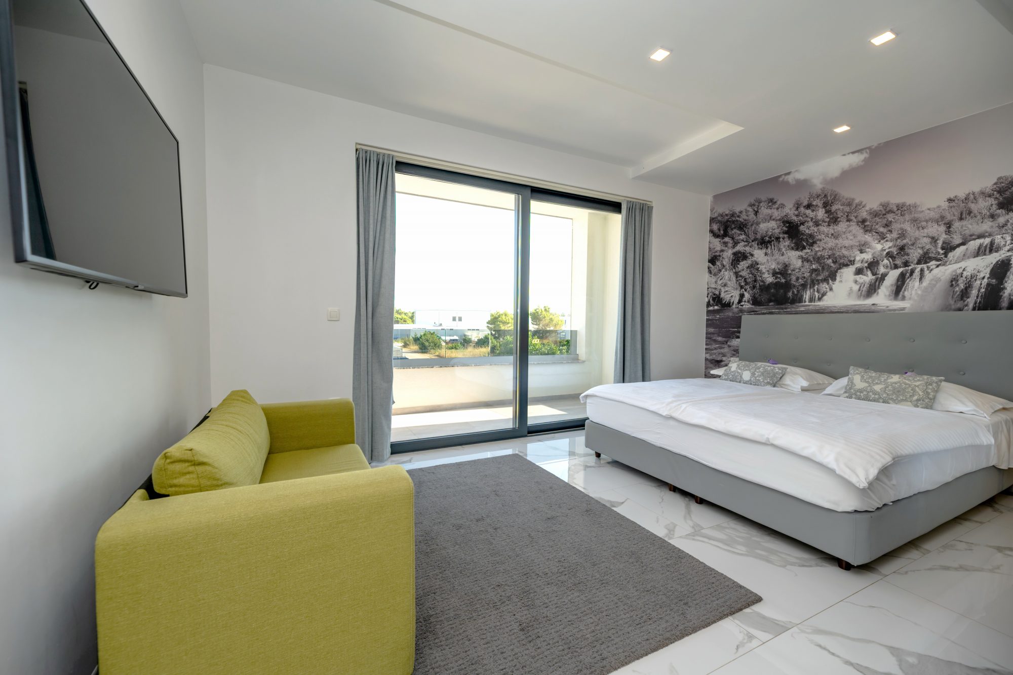Massive Thermoblock-Bauweise, 10 cm Fassadendämmung, Aluminiumfenster, Fußbodenheizung im gesamten Haus sowie Klimaanlagen in allen Räumen unterstreichen den hohen Qualitätsstandard. Die Villa wird vollständig möbliert übergeben, ist umzäunt und bietet ein hohes Maß an Privatsphäre. Sechs Stellplätze, davon zwei überdacht, sind vorhanden. Das Meer liegt rund einen Kilometer entfernt, mehrere Strände befinden sich in der Umgebung. Ideal zur Eigennutzung oder als hochwertige Investmentimmobilie im Segment der exklusiven Ferienvermietung.