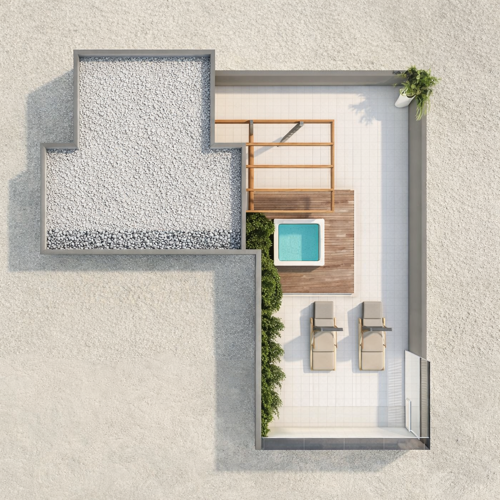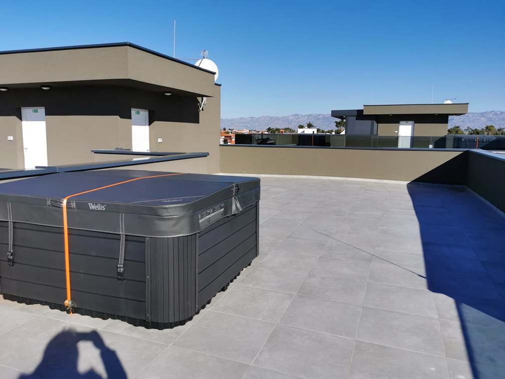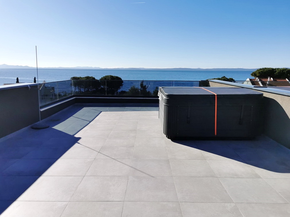 Ein besonderes Highlight ist die private Dachterrasse mit ca. 89 m² und eigener Whirlpool. Von hier aus eröffnet sich ein beeindruckendes Panorama über die Adria und den Zadar-Kanal – ein exklusiver Ort für Entspannung und unvergessliche Momente unter freiem Himmel.