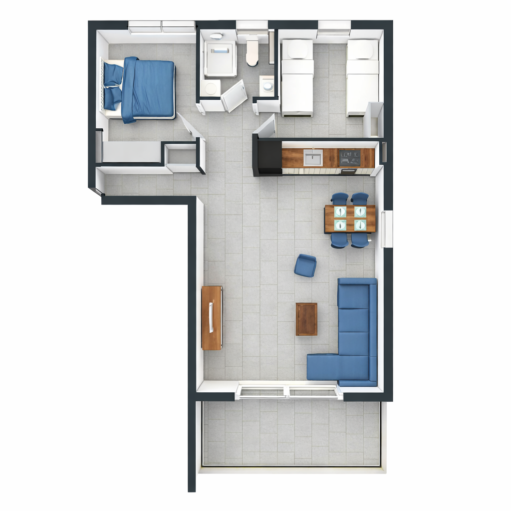 Die Wohnfläche von ca. 86 m² umfasst einen großzügigen Wohn- und Essbereich mit offener Küche, zwei ruhige Schlafzimmer, ein elegantes Badezimmer sowie eine überdachte Terrasse mit freiem Blick auf das Meer. Klare Linien, hochwertige Materialien und lichtdurchflutete Räume schaffen ein modernes und gleichzeitig warmes Wohnambiente.
