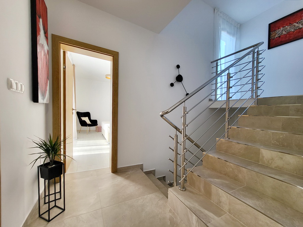 In traumhafter Lage, nur wenige Schritte vom glasklaren Meer entfernt, erwartet Sie diese elegante Luxusvilla in Privlaka – ein Rückzugsort, der modernes Wohnen und mediterranen Lifestyle perfekt verbindet.