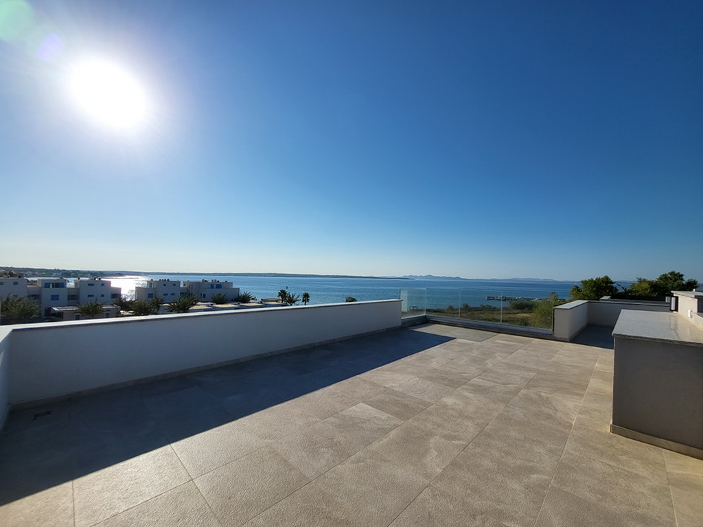 Ein Highlight ist die 85 m² große Dachterrasse mit Vorbereitung für Whirlpool und Sommerküche – der perfekte Ort für entspannte Stunden mit Meerblick und unvergessliche Sonnenuntergänge.