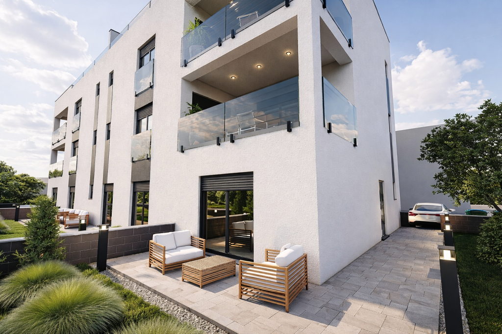 Wo Licht, Weite und Meeresnähe eine harmonische Einheit bilden, entsteht in Sabunike bei Privlaka diese außergewöhnliche Neubauwohnung mit privater Dachterrasse und eindrucksvollem Blick auf die Adria. Eingebettet in ein modernes Gebäude mit nur sieben Einheiten vereint sie architektonische Klarheit mit einem spürbaren Gefühl von Exklusivität.