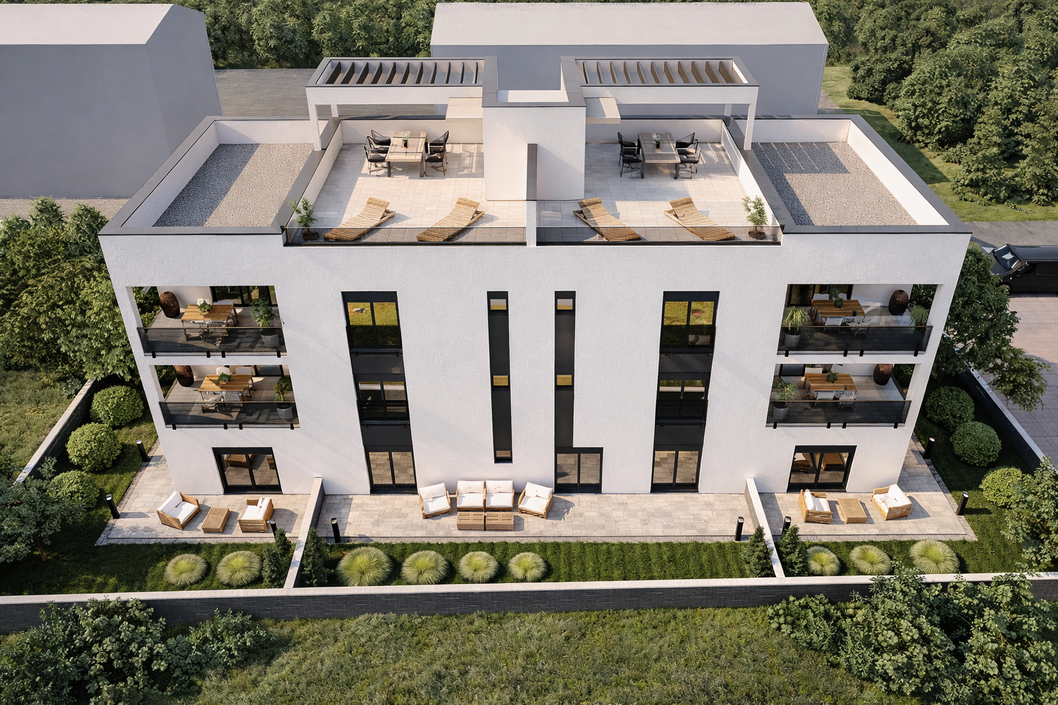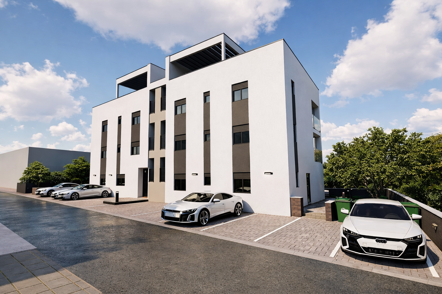 Wo Licht, Weite und Meeresnähe eine harmonische Einheit bilden, entsteht in Sabunike bei Privlaka diese außergewöhnliche Neubauwohnung mit privater Dachterrasse und eindrucksvollem Blick auf die Adria. Eingebettet in ein modernes Gebäude mit nur sieben Einheiten vereint sie architektonische Klarheit mit einem spürbaren Gefühl von Exklusivität.
