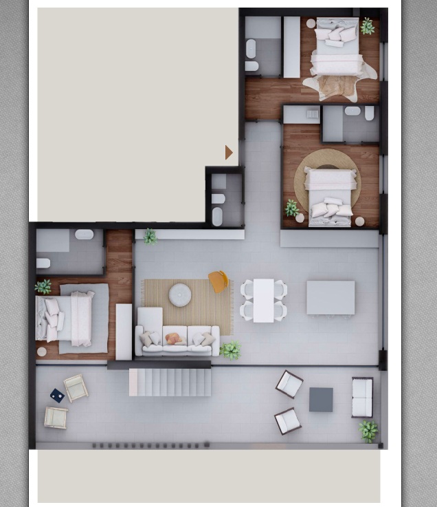 - 3 Schlafzimmer, 3 Badezimmer, 4 WC’s, offener Wohn-/Essbereich mit Küche