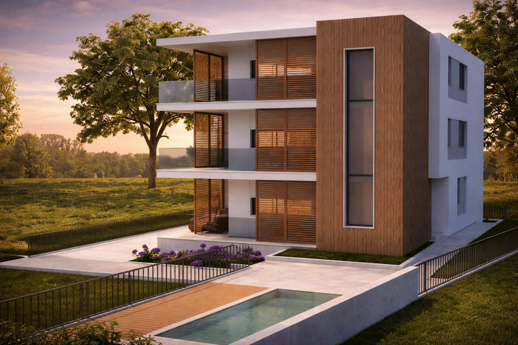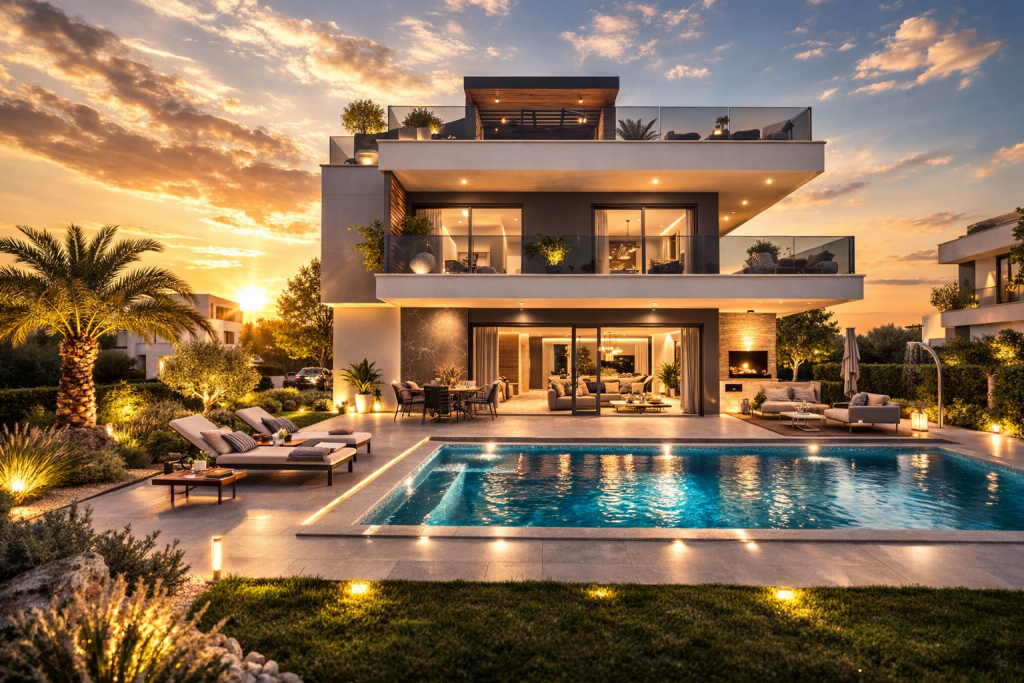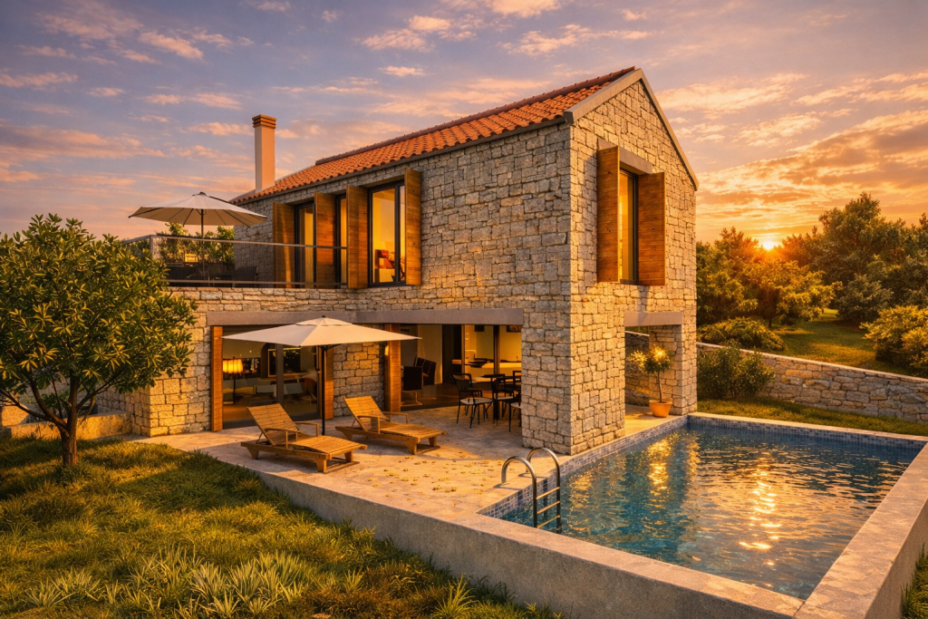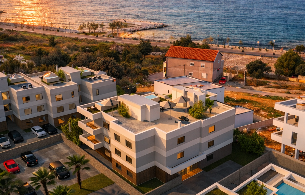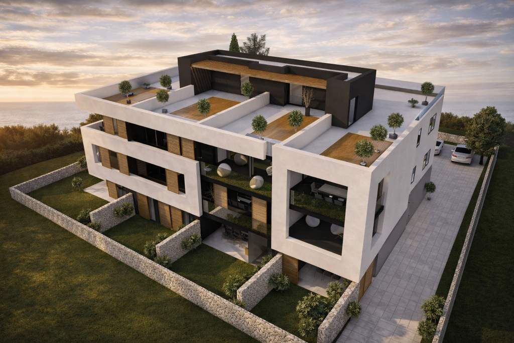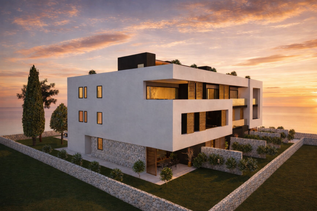 Wo moderne Architektur und mediterrane Ruhe eine vollendete Einheit bilden, entsteht eine Villa von außergewöhnlicher Qualität. Diese exklusive Residenz nahe Zadar vereint stilvolle Außenbereiche, beheizten Salzwasserpool und hochwertige Bauweise zu einem Zuhause, das Privatsphäre und Eleganz auf höchstem Niveau verkörpert.